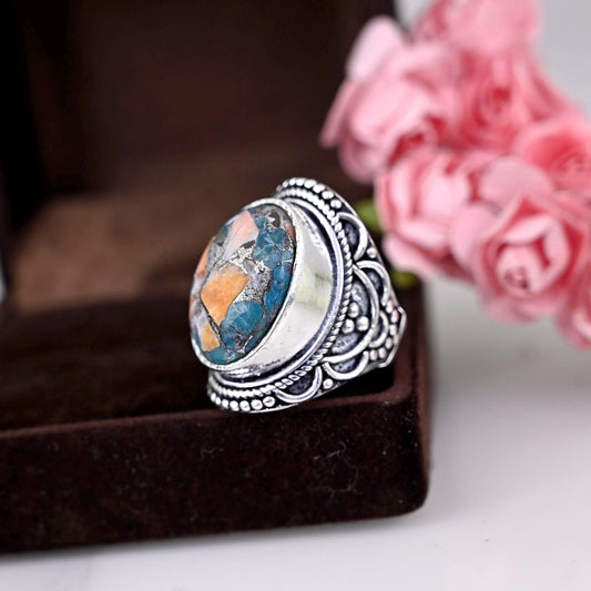 ✦••✧••✦••✧••✦••✧••✦••✧••✦ 》D E T A I L S《 ✦Stone :- Oyster Copper Turquoise ✦Stone Size:-15x20MM ✦Stone Shape:- Oval ✦Stone Type:- Natural ✦Metal:- Silver ✦Purty:- 925 Sterling Silver ✦Weight:- 8 Gram (Approx) ✦Ring Size:- All Size Available ✦••✧••✦••✧••✦••✧••✦••✧••✦ 》C U S T O M I Z E O R D E...