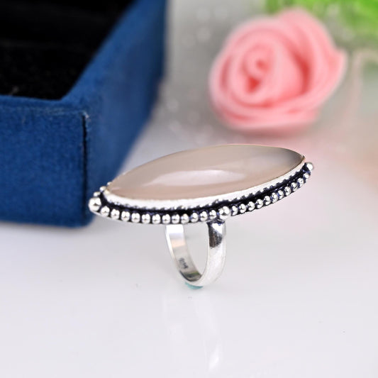 ✦••✧••✦••✧••✦••✧••✦••✧••✦ 》D E T A I L S《 ✦Stone :- Rose Quartz ✦Stone Size:-10x30MM ✦Stone Shape:-Marquise ✦Stone Type:- Natural ✦Metal:- Sterling SIlver ✦Weight:- 8 Gram (Approx) ✦Ring Size:- All Size Available ✦••✧••✦••✧••✦••✧••✦••✧••✦ 》C U S T O M I Z E O R D E R《 We accept custom and...