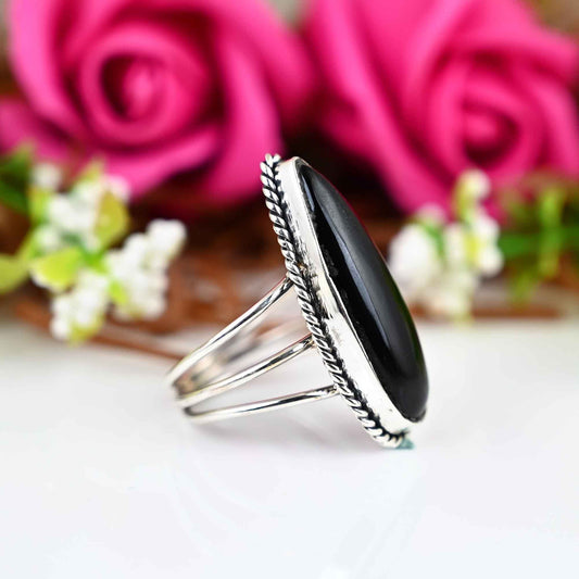 ✦••✧••✦••✧••✦••✧••✦••✧••✦ 》D E T A I L S《 ✦Stone :- Black Obsidian ✦Stone Size:- 10x25 MM ✦Stone Shape:- Pear ✦Stone Type:- Natural ✦Metal:- Silver ✦Purty:- 925 Sterling Silver ✦Weight:- 7 Gram (Approx) ✦Ring Size:- All Size Available ✦••✧••✦••✧••✦••✧••✦••✧••✦ 》C U S T O M I Z E O R D...