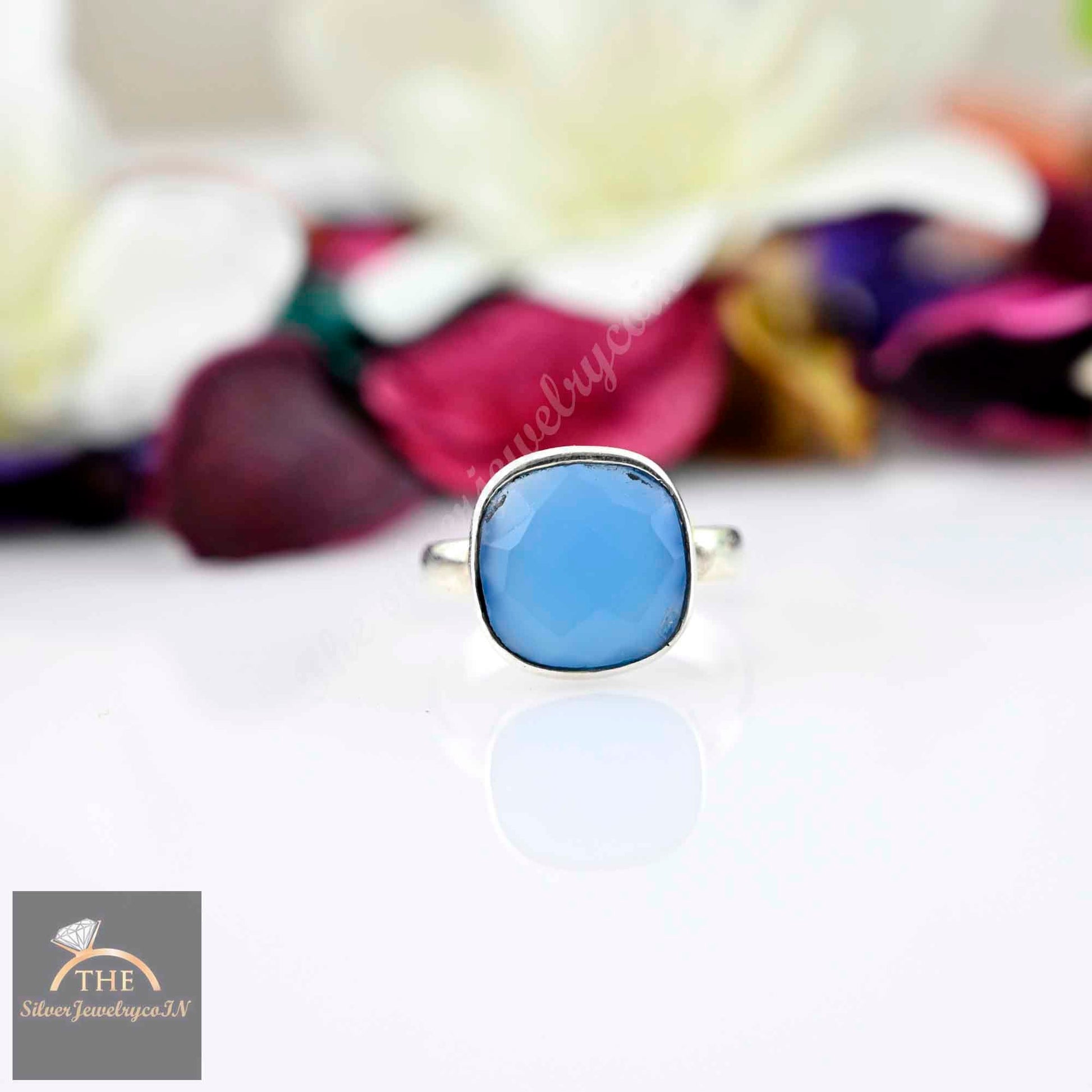 Aqua Chalcedony Ring, Cushion stackable rings, Chalcedony Ring, Everyday Ring, Gemstone Rings